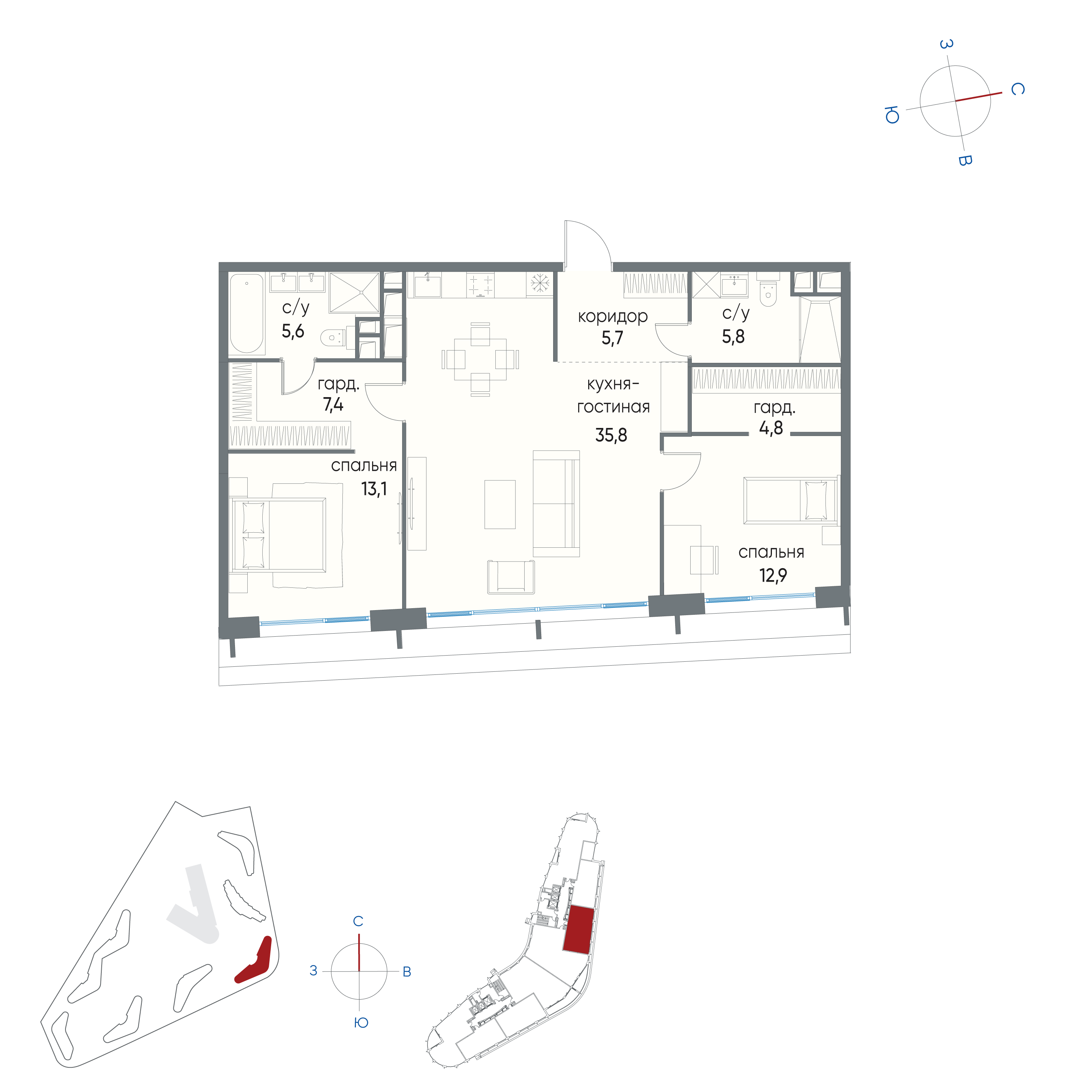 ID объекта: G-5631. На продажу предлагается просторная четырехкомнатная квартира свободной планировки в экологически чистом районе Москвы.Пространство возможно функционально спланировать следующим образом: гостиная-кухня-столовая в едином пространстве , мастер-спальня с собственным санузлом, гостевая спальня, кабинет/детская спальня, 2 санузла, хозяйственные помещения. Высокие потолки—3,3.Квартира линейной планировки, окна выходят на гольф-клуб.Для жителей дома предусмотрен подземный паркинг с возможностью приобретения или аренды машиноместа.Жилой комплекс состоит из двух башен-корпусов разной формы, соединенных малоэтажной секцией. Центральный вход выполнен в форме многоцветного вестибюля-атриума 15-метровой высоты со стеклянным куполом. Холл отделан натуральным камнем и деревом с медовым вощением.Этажность корпуса В - 35 этажей. В жилую часть корпуса ведет просторная галерея высотой более 6 метров, отделанная угольно черным и молочно-белым мрамором, травертином и стеклянными панелями. Для удобства жителей и гостей комплекса входная группа меблирована, комфортными креслами и диванами, есть терминал оплаты.Инфраструктура дома включает в себя: торгово-развлекательный комплекс, деловой центр, спортивную площадку, детский игровой городок.