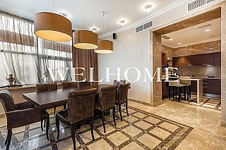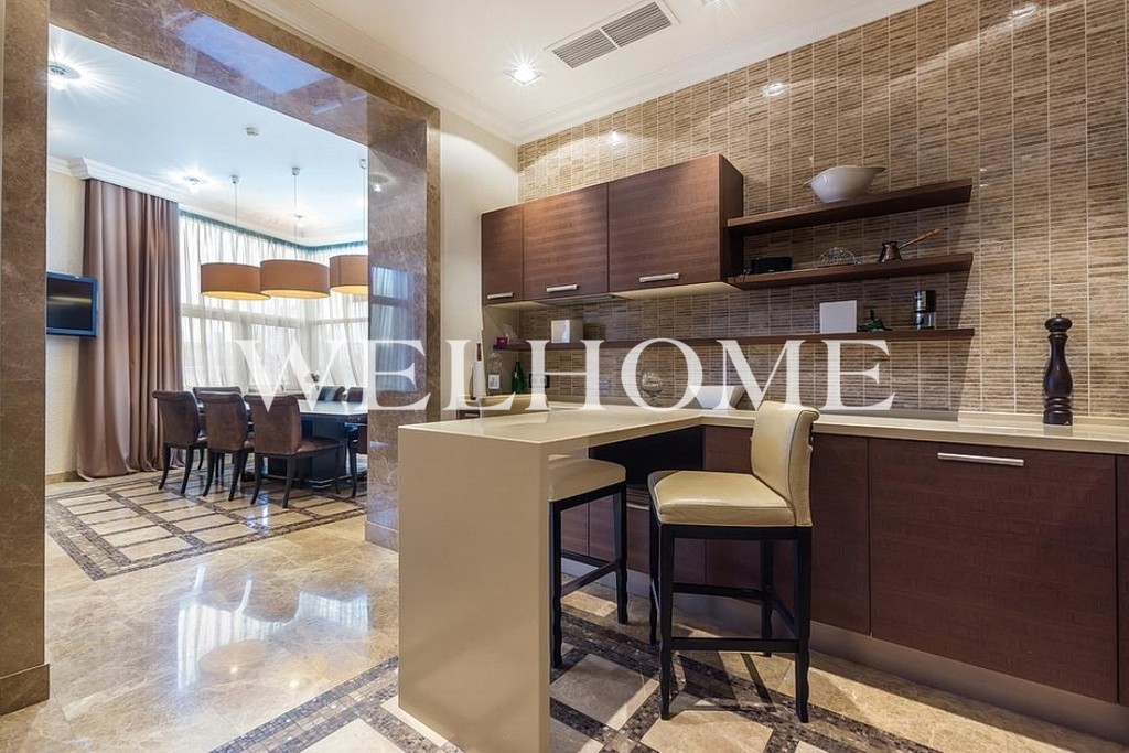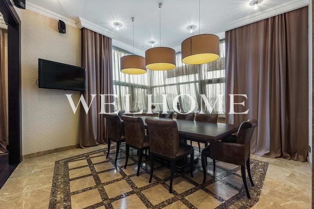 ID объекта: G-6209. В элитном клубном доме класса Delux на 23 квартиры ЖК "Дом у Никитских ворот" продается трехсторонняя 5-комнатна квартира с дизайнерской отделкой в современном стиле.В отделке использовались: натуральные породы дерева, натуральный камень, шелк, высококачественная кожа. Мебель и предметы интерьера доставлялись под заказ от ведущих Итальянских, Американских и Французских дизайнеров. Установлена премиальная бытовая техника Kuppersbusch. Квартира оснащена фильтрами очистки воды до уровня питьевой, фильтрами очистки воздуха, системой кондиционирования и климат контроля.Планировка: кухня, гостиная-столовая, мастер блок – хозяйская спальня с гардеробной и санузлом, вторая спальня со своим санузлом, и третья спальня со своим санузлом, кабинет или четвертая спальня с выходом на лоджию/зимний сад 12 м2, холл с гардеробной, прихожая с гардеробной, гостевой санузел, постирочная, кладовая/щитовая. Высота потолка: 3,2 м.Виды: на памятник русской истории – действующий Храм Вознесения Господня в Сторожах и на Скатертный переулок.Закрепленное машиноместо в подземном паркинге входит в стоимость.