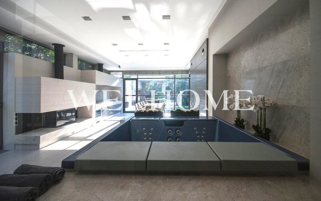 ID объекта: Z-15492. Просторный дом с панорамным остеклением. На участке выполнен профессиональный ландшафтный дизайн с использованием растений из российских и немецких питомников.Дом и сад имеют несколько уровней подсветки. Дом оснащен системой противопожарной безопасности, беспроводными датчиками сигнализации протечки воды.1 этаж: коридор, гардеробная, гостевой санузел, кабинет, гостиная со вторым светом, кухня-столовая, подсобное помещение для кухни, постирочная, спа-зона (70 м2): коридор, санузел, сауна Tylo, мини-бассейн Teuco, комната отдыха с камином и барбекю, открытые терраса и бассейн, гараж 2 м/м;2 этаж: основная спальня, с ванной и гардеробной, гардеробная для сезонных вещей, спальня детская с ванной комнатой и гардеробной, спальня детская с гостиной, ванной и встроенной гардеробной.