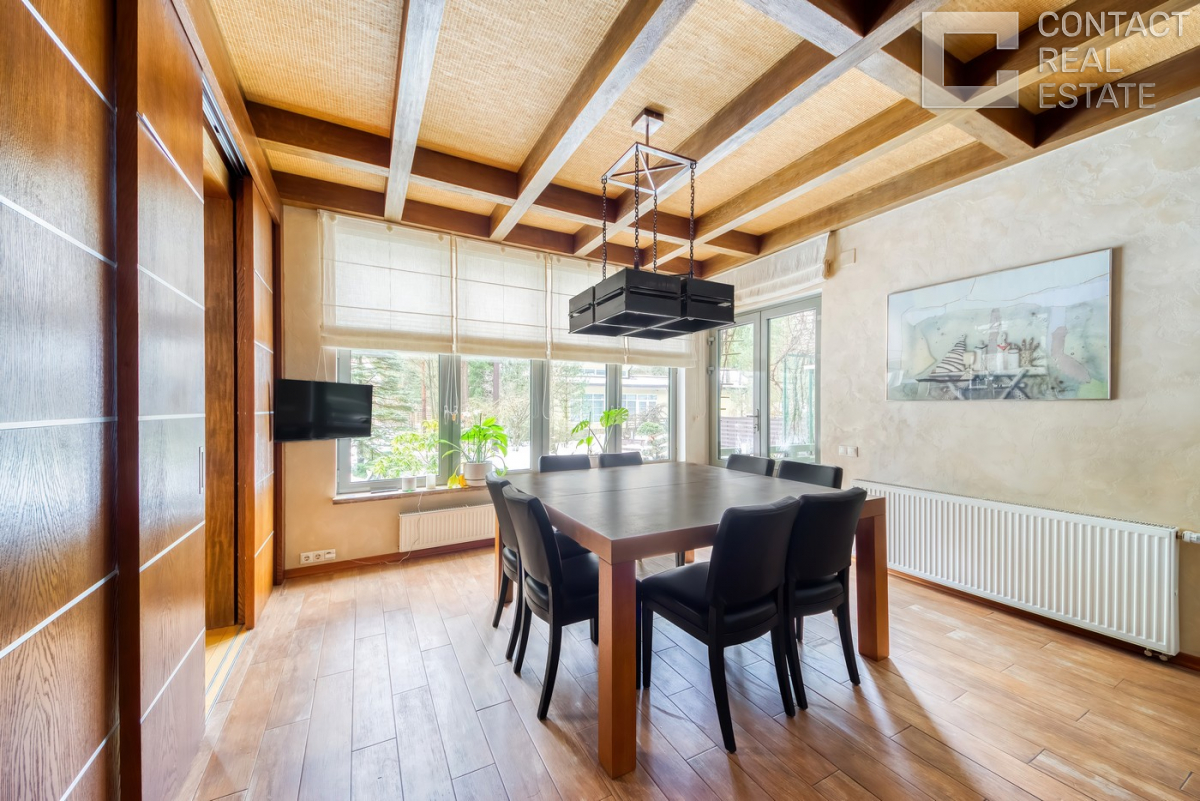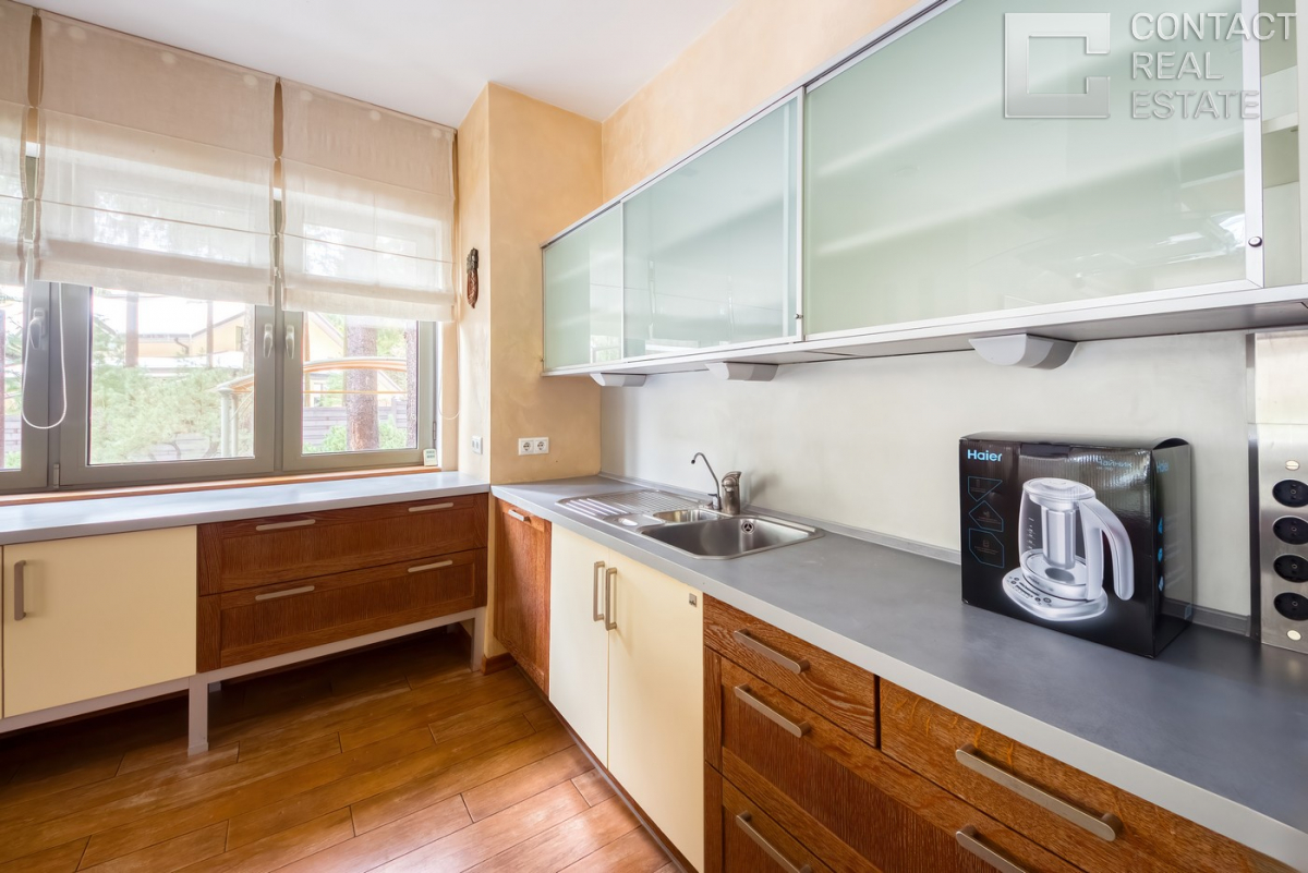Рублево-Успенское шоссе, 19 км. КП "Лесной простор-1". В долгосрочную аренду предлагается просторный загородный дом площадью 400 кв. м. В основном доме: прихожая с гардеробной, гостиная с камином и вторым светом, кухня-столовая с выходом на просторную террасу с зоной барбекю, гостевой с.у с душевой, гостевая спальня, постирочная, гараж на 1 м.м., котельная; на втором этаже: мастер-блок: спальня с выходом на балкон, ванная, гардеробная; 2 детские спальни с душевой комнатой, спальня с ванной комнатой. На лесном участке 22 сотки помимо основного дома расположен СПА-комплекс с бассейном и сауной, а также квартира для персонала. Выполнен ландшафтный дизайн, пруд с рыбками, детский городок. Все коммуникации центральные. Быстрый выезд на платную дорогу! [Лот #21865]