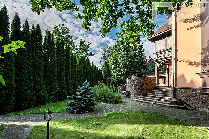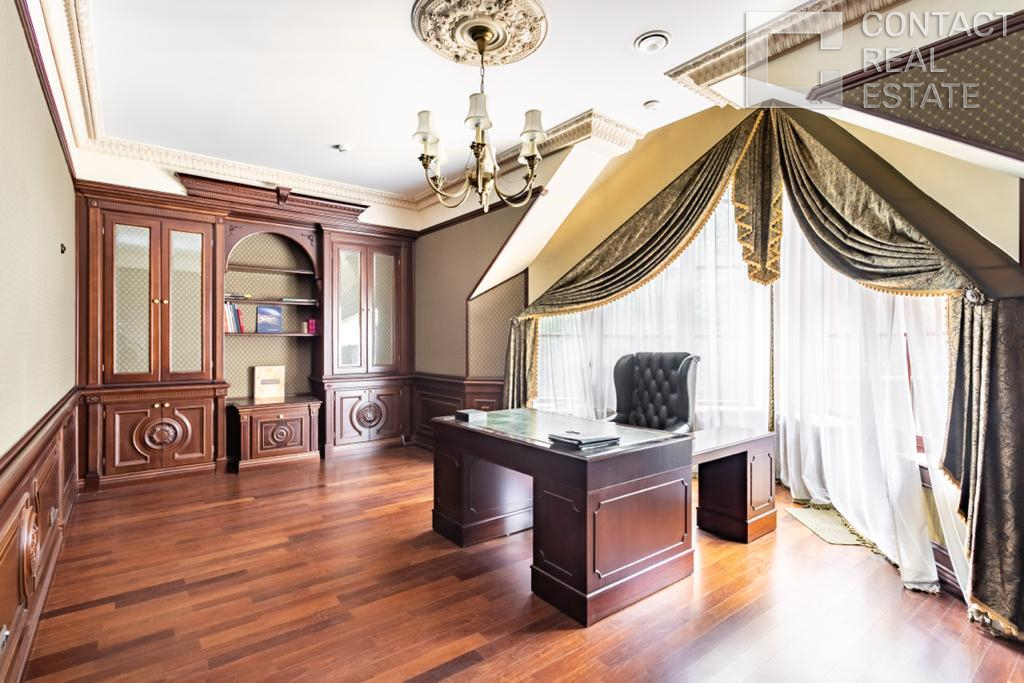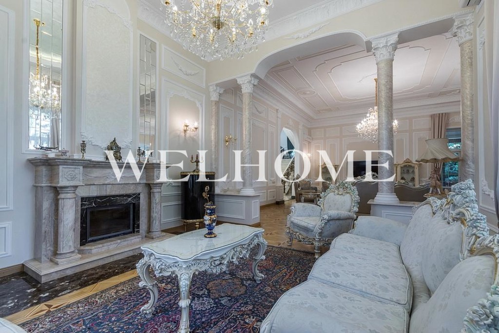 Самый инфраструктурный посёлок Рублево-Успенского шоссе! Предлагается в продажу шикарный особняк в лучшей части коттеджного посёлка Николино! Общая площадь дома составляет 800 кв.м.: цоколь - бильярдная и винная зона, сауна, постирочная, с/у, техническая, 1 этаж: холл, гараж на 2 м/м, кабинет (гостевая спальня), столовая зона, гостиный зал с камином, кухня с зоной для завтрака и выходом на патио, 2 этаж - мастер - спальня с гардеробными и ванной комнатой и выходом в зимний сад, 2 спальни с ванными комнатами и гардеробными, мансардный этаж - спальня, с/у, библиотека, зона для отдыха. 0,5 га потрясающего ухоженного лесного участка. Дом в отличном состоянии, великолепная классика. Удобный выезд на платный дублер и всего 3 минуты до госпиталя Лапино. [Лот #21607]