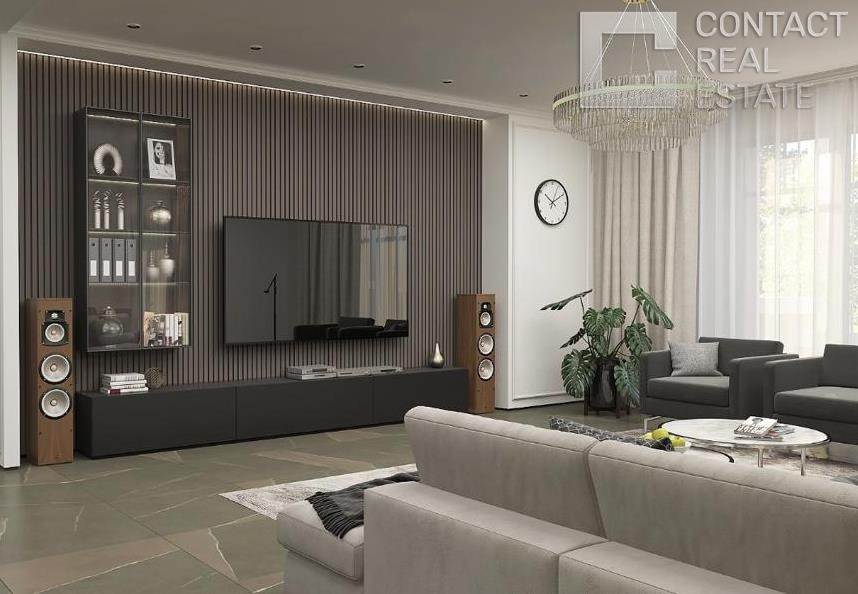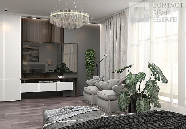 Современный новый дом для постоянного проживания в стиле Райт площадью 467 кв.м, расположен в самом центре лесного массива. В настоящий момент завершается финишная отделка, готовность под ключ с мебелью - январь 2023.