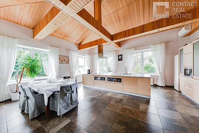 Вашему вниманию представляется прекрасный загородный дом площадью 298 кв.м. в коттеджном поселке Зеленая Роща. Дом полностью построен, отделан, меблирован, и готов к проживанию. На участке 25.71 сот. расположены баня, дом для персонала, теплица.