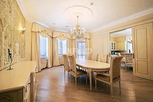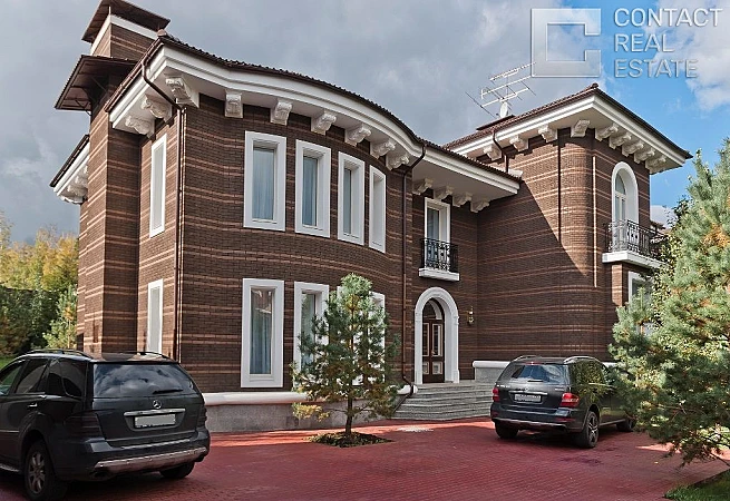 В организованном коттеджном поселке Горки-8 Рублево-Успенского шоссе предлагается в аренду новый, готовый к проживанию основной дом площадью 650 кв.м, отделка выполнена в стиле современной классики. На участке 23 сотки расположен также гараж на 3 м/м, с квартирой для обслуживающего персонала и дом для отдыха с бассейном и сауной. Развитая инфраструктура поселка. В поселке все центральные коммуникации. [Лот #11118]