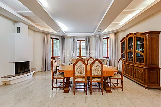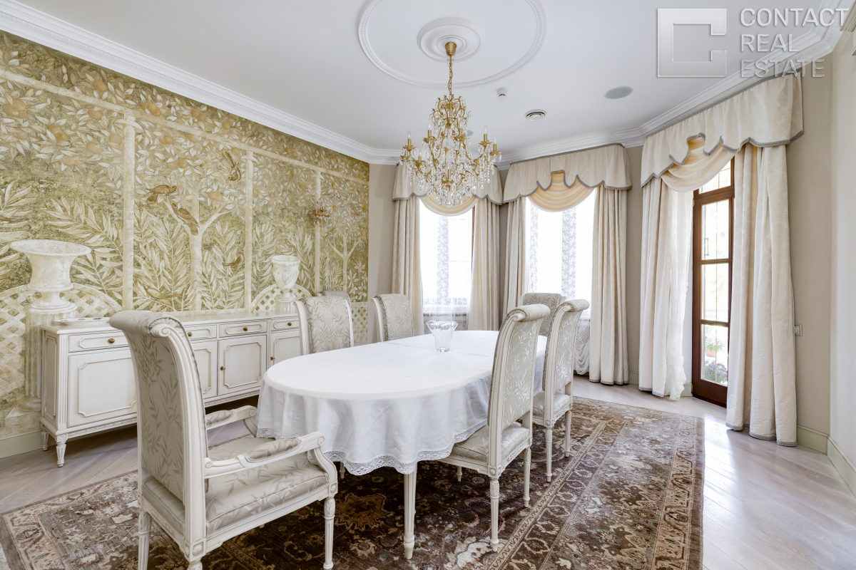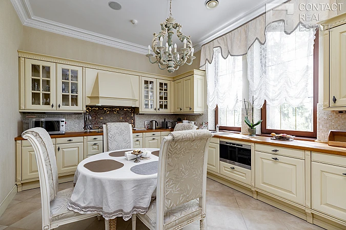 «Николино» заслужено является одним из лучших поселков Подмосковья. Здесь предлагается классическая резиденция площадью 650 квм, полностью готовая к проживанию. В доме: 4 спальни, кабинет, гостиная с камином, дом кинотеатр, СПА-зона с хамам и джакузи. На лесном участке 60 соток также расположен гостевой дом из клееного бруса с русской баней и гараж на 2 м/м с квартирой для проживания персонала (2спальни, кухня, с.у). На участке выполнен роскошный ландшафтный дизайн, уличное освещение, автополив. Большая парковка перед домом на 5 машин. Развитая инфраструктура, платная дорога! [Лот #10363]