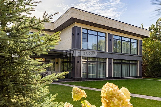 Специальное предложение! Дом в современном стиле, площадью 950 кв.м., с внутренней отделкой, на красивом участке 50 соток, расположился в одном из самых престижных поселков Жуковки, в непосредственной близости от Москвы-реки. Удобный подъезд, с двух направлений. В шаговой доступности вся необходимая инфраструктура: фитнес-центры, детский сад, школа President, рестораны, магазины. [Лот #8743]
