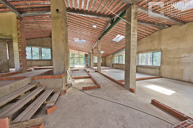 Коттедж без отделки в КП «Полянка» построен по индивидуальному проекту. Дом находится в лесу, у пруда. Свободная планировка. Общая площадь дома 760 м2, дополнительная площадь веранды и балконов - 85 м2. Участок 36 соток, с умеренным рельефом, расположен в северной части поселка и с одной стороны граничит с прудом. На участке лес первой категории - ель, береза. [Лот #8113]