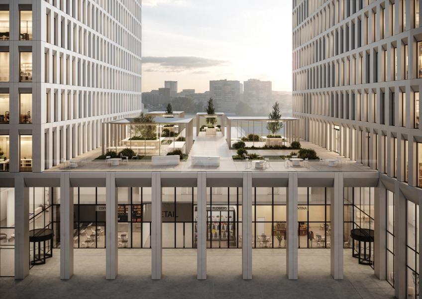 Бизнес-центр класса А STONE Савеловская находится сейчас на стадии высокой стадии строительной готовности (сдача апрель 2026 года) и представляет собой две современные 100-метровые башни, объединенные стилобатом с собственной развитой инфраструктурой.