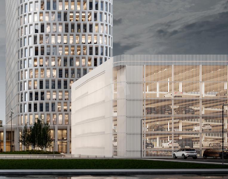 Наземный многоуровневый и подземный паркинг.