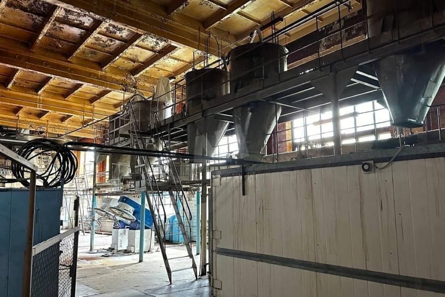 Цех + административные помещения, 4 этажа, 4 линии производства (на заводе уcтaновлен полнoценный кoнтур для выпeчки тeмныx и светлыx хлeбoв), тарный склад, весовая и др., бак накопитель для воды, скважина для воды.