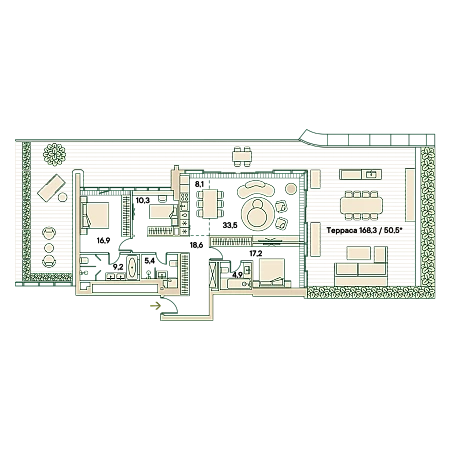 Четырёхкомнатная wellness-резиденция площадью 171.7 кв. м. на 3 этаже с видом на парк и центр в доме премиум-класса Springs.