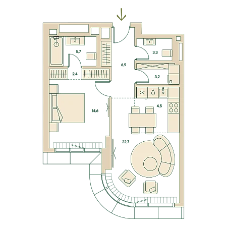 Двухкомнатная wellness-резиденция площадью 62.1 кв. м. на 9 этаже с видом на двор в доме премиум-класса Springs.