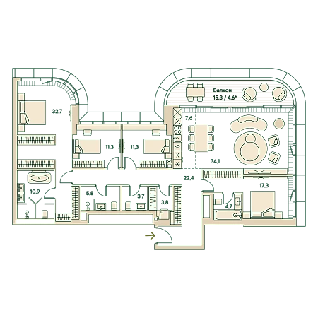 Пятикомнатная wellness-резиденция площадью 167.7 кв. м. на 16 этаже с видом на парк и центр в доме премиум-класса Springs.