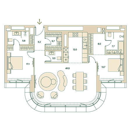 Трёхкомнатная wellness-резиденция площадью 125.5 кв. м. на 16 этаже с видом на двор в доме премиум-класса Springs.