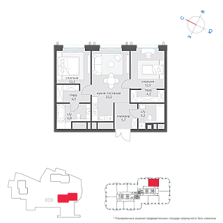 В квартире выполнена чистовая дизайнерская отделка. Резиденция наполнена светом и воздухом, благодаря панорамному остеклению и высоким потолкам.