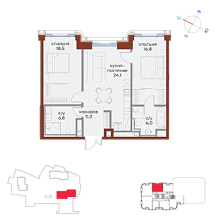 Двухкомнатная wellness-резиденция площадью 64.4 кв. м. на 19 этаже с видом на центр в доме премиум-класса Springs.