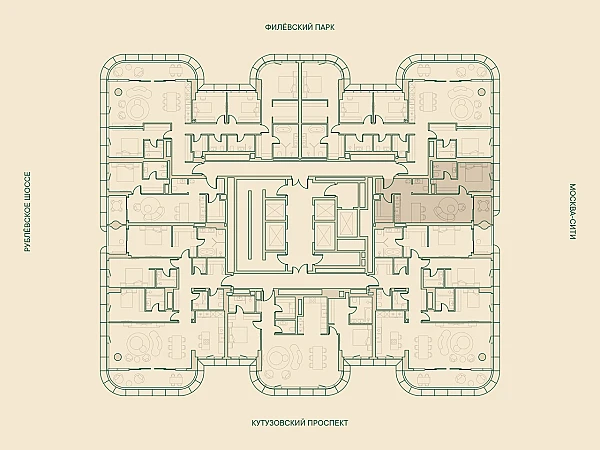 До делового комплекса Москва-Сити всего 16 минут, а центр — в 14 минутах езды по Кутузовскому проспекту. Удобный выезд к Рублёвскому шоссе — отличная возможность на выходных сбежать с детьми за город, потратив на дорогу меньше получаса.