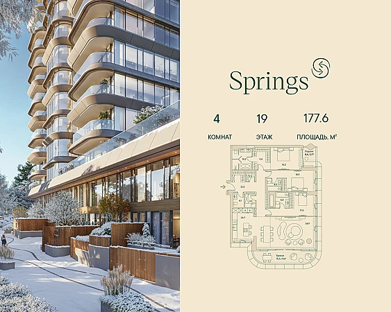 Четырёхкомнатная wellness-резиденция площадью 177.6 кв. м. на 19 этаже с видом на двор и центр в доме премиум-класса Springs.