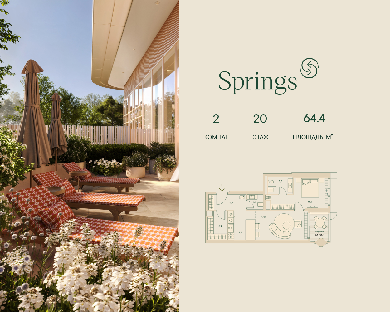 Купить 2к квартиру 64 м² в клубном доме Springs
