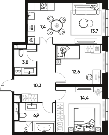 Главная Купить квартиру в Москве и МО 3к квартира 69 м² в ЖК Pride