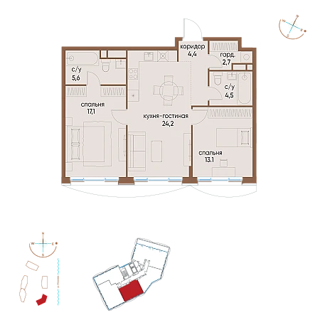 Купить 3к квартиру 69 м² в ЖК Pride