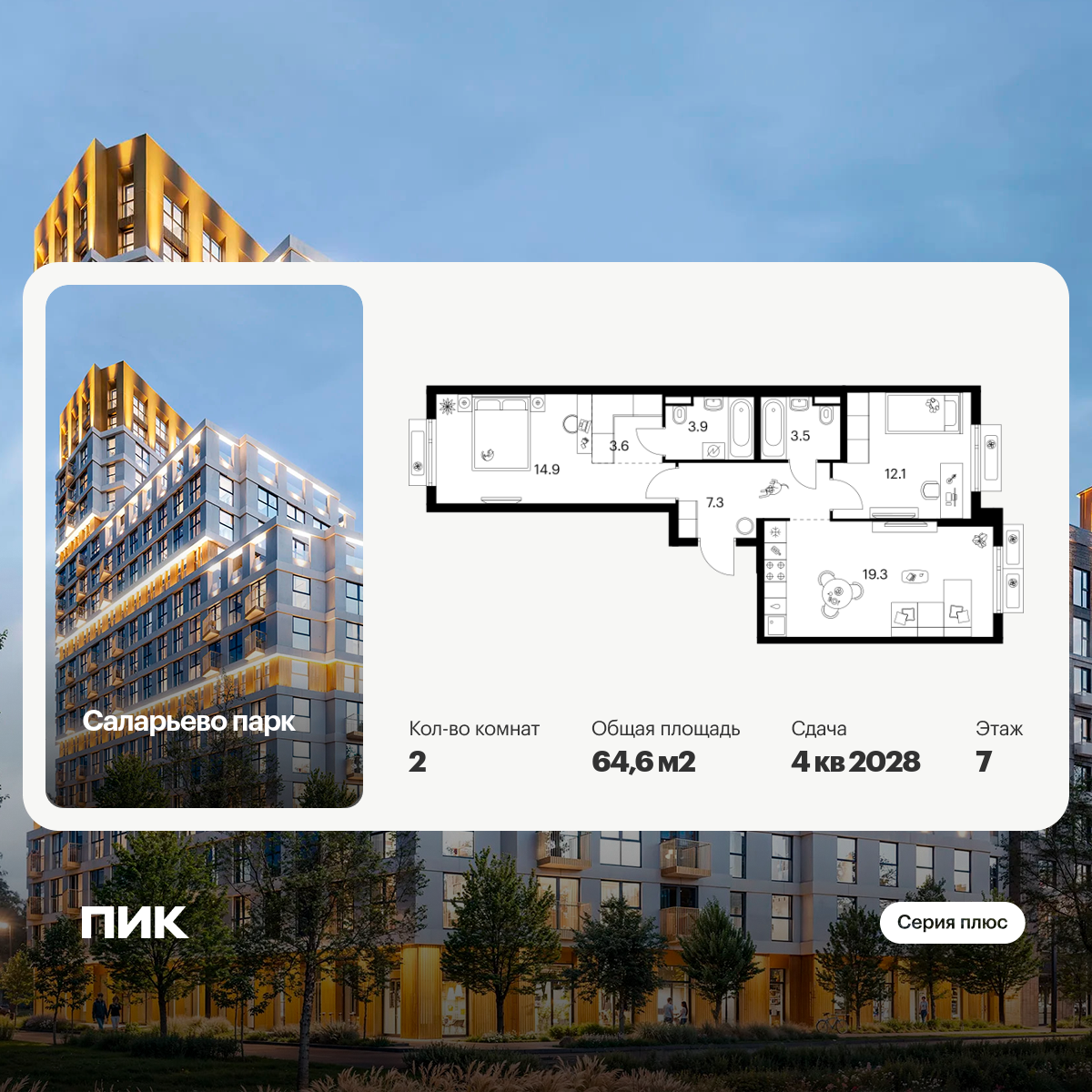 Продаются 1-к апартаменты площадью 44.9 кв.м. на 6-м этаже 33 этажного дома «Мираполис» от ГК ОСНОВА.