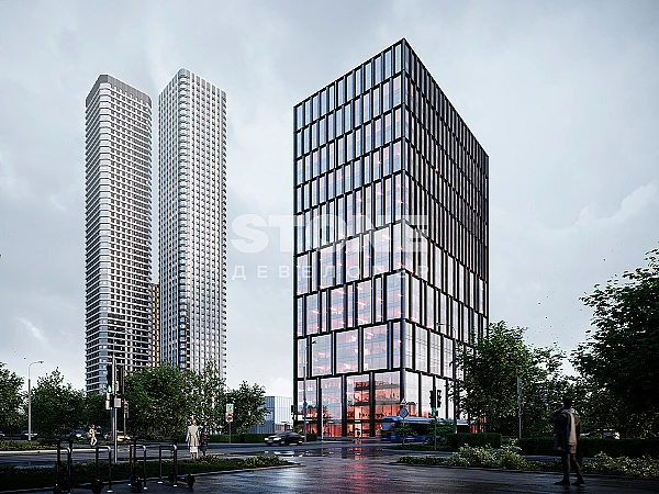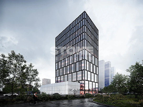 Архитектура от бюро IND. Проектом предусмотрена 23-этажная офисная башня с динамичным фасадом, а также торговая галерея с панорамным остеклением. Общая площадь бизнес-центра составит 49 тыс. кв. м.