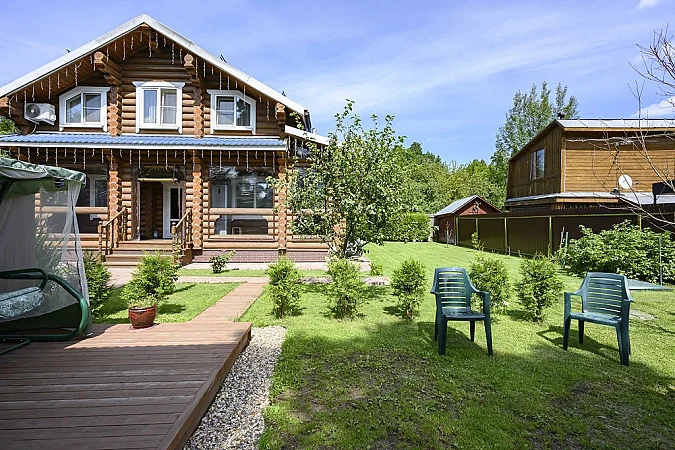 На участке есть зона отдыха, хоз постройки, въезд для машины.