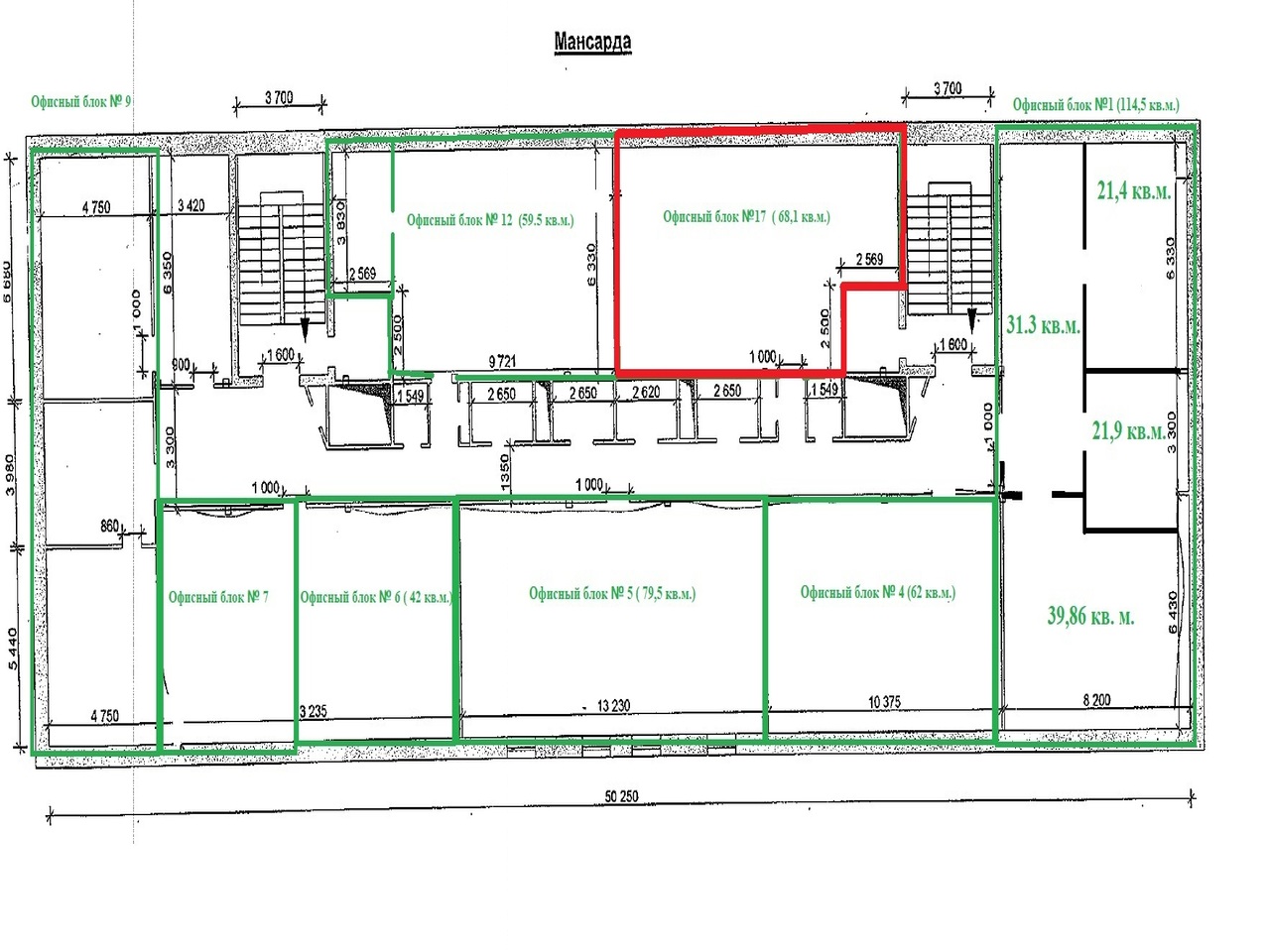 Предлагается в аренду помещение от собственника общей площадью 68,10 м² на мансардном этаже (6-й этаж).