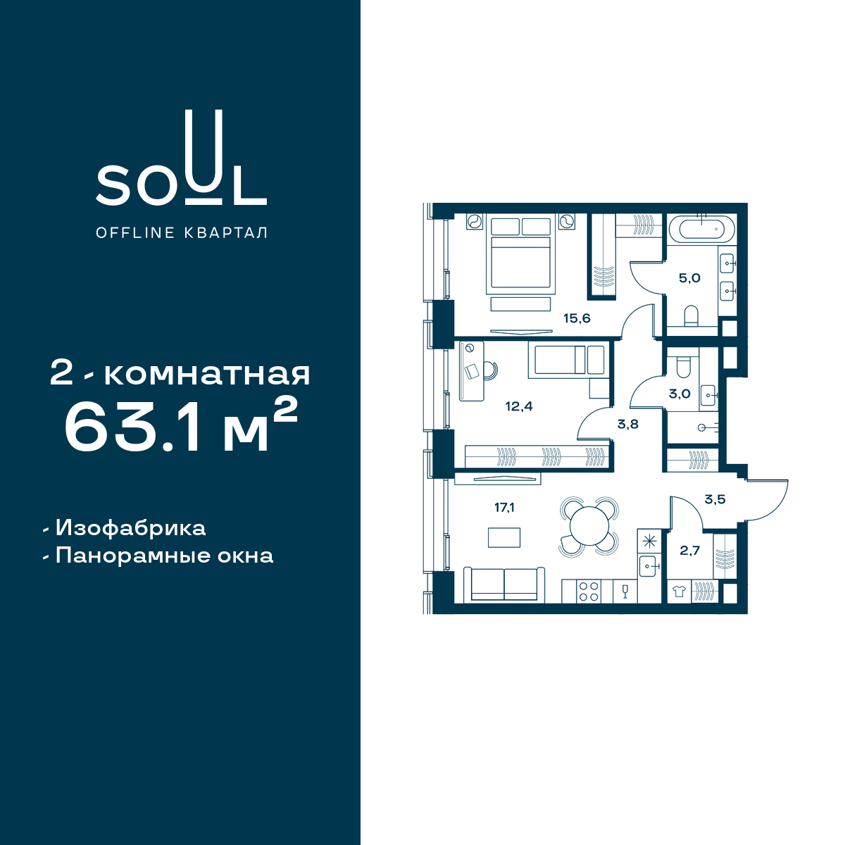 Купить 1к квартиру 43 м² в ЖК Павелецкая от Гранель