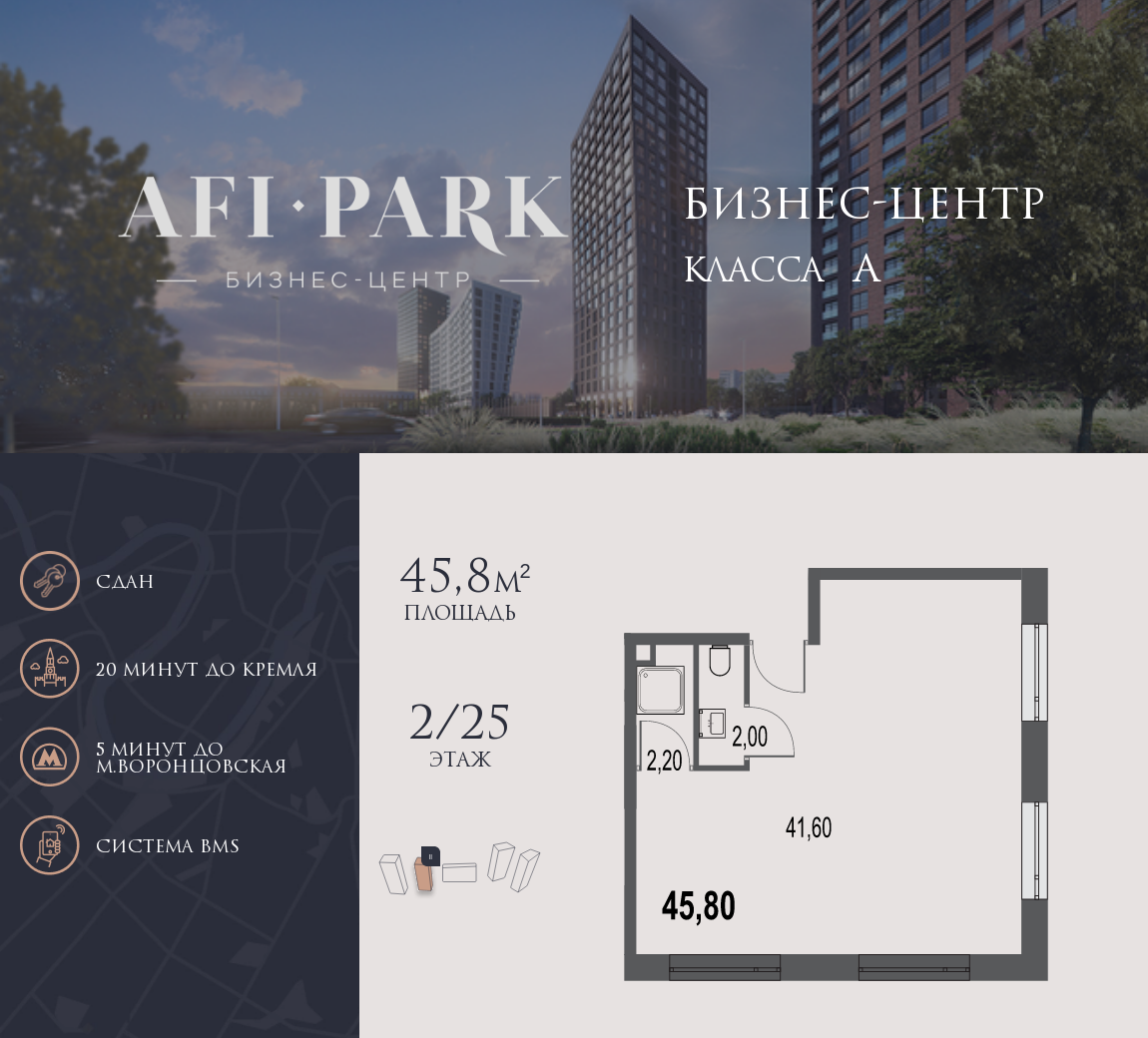 Продаётся офисное помещение площадью 55.40 кв. м в Левел work Воронцовская (от компании Level Group), новом бизнес-центре класса A в престижном Обручевском районе Москвы (ЮЗАО).