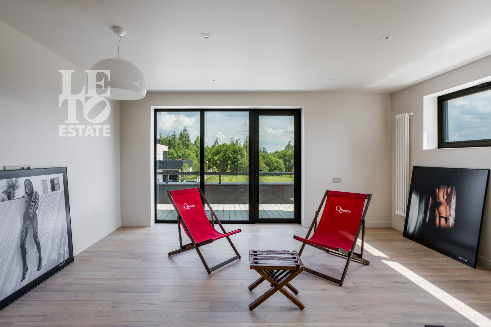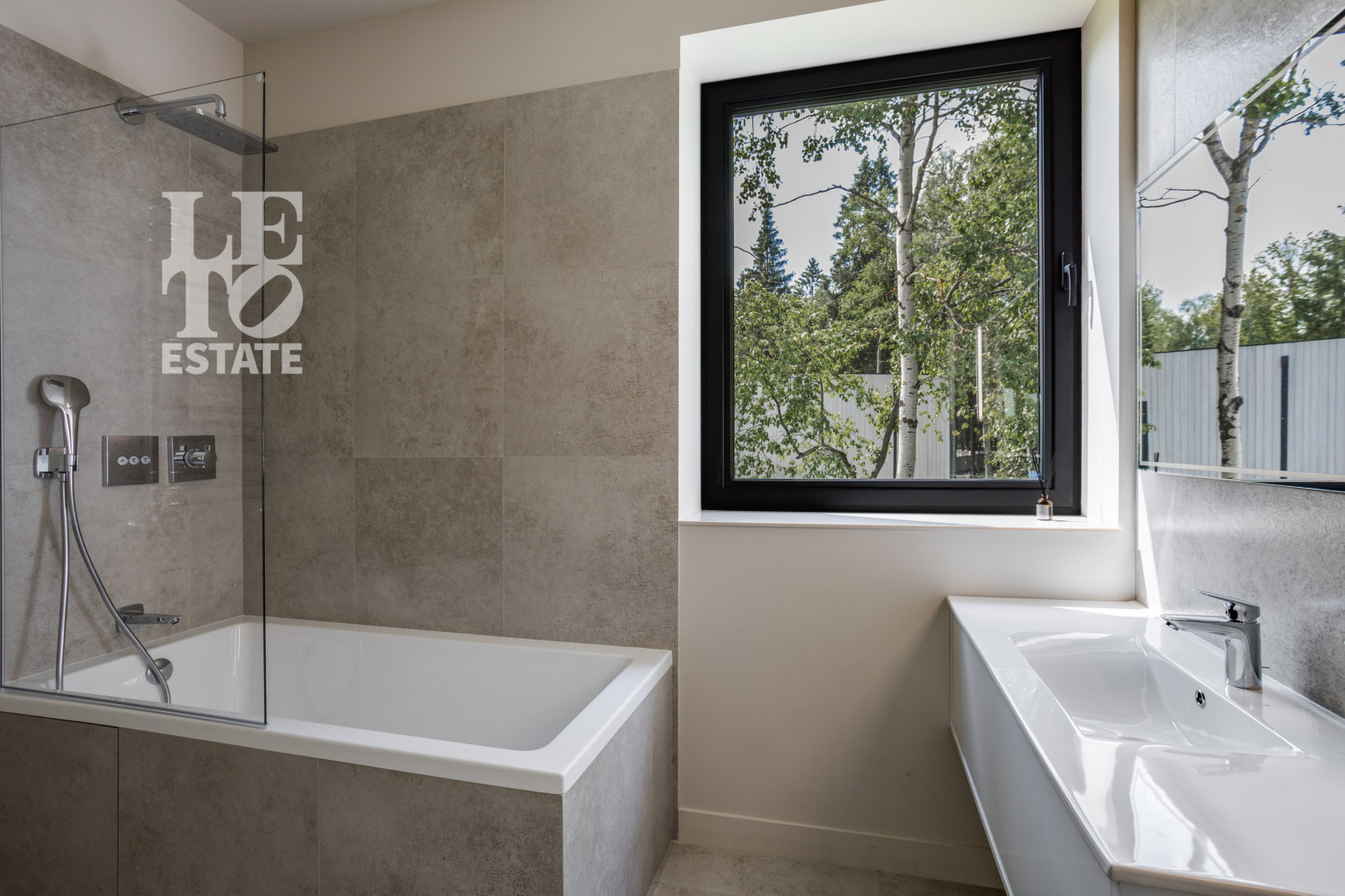 Изюминкой дома являются раздвижные оконные порталы в гостиной и кухне, а также стеклянные эркеры (Oriel) в гостевых спальнях. Дом построен в стиле современного минимализма. В отделке фасада использованы планкены из лиственницы, архитектурная подсветка. Конструктив дома – монолитный каркас, фундамент – утепленная шведская плита. На первом этаже дома - теплый пол. Кровля плоская. Две террасы, общей площадью 32 кв.м., организуют удобные места отдыха с видами на лес.