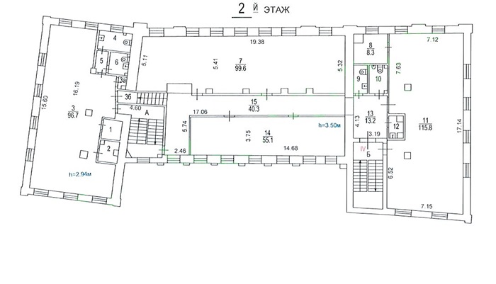 **2563 м²** на **5 уровнях**: цоколь с окнами в приямок, 3 этажа и мансарда. Высота потолков — **2,5–3,9 м**, смешанная планировка, офисная отделка. **2 отдельных входа** и **2 лестницы** обеспечивают независимость потоков.✔ **Локация**: