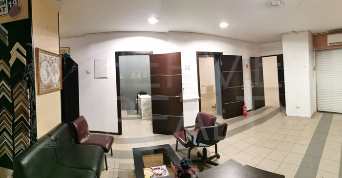 Помещение. 3 уровня – 1 этаж 850 м2, цоколь 430 м2, подвал 418 м2. Потолки 4 м. Витринное остекление в пол. Зона погрузки/разгрузки и подвоз грузов осуществляется через подземный въезд и дебаркадер. Имеется грузовой лифт. Коммуникации центральные. Максимальная выделенная электрическая мощность 472 кВт.