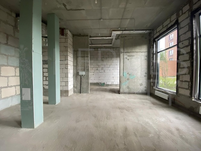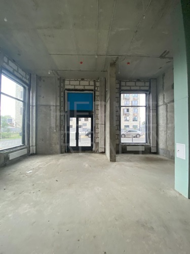 Высокие потолки 4,82м. Окна панорамные витринные. Помещение без отделки.