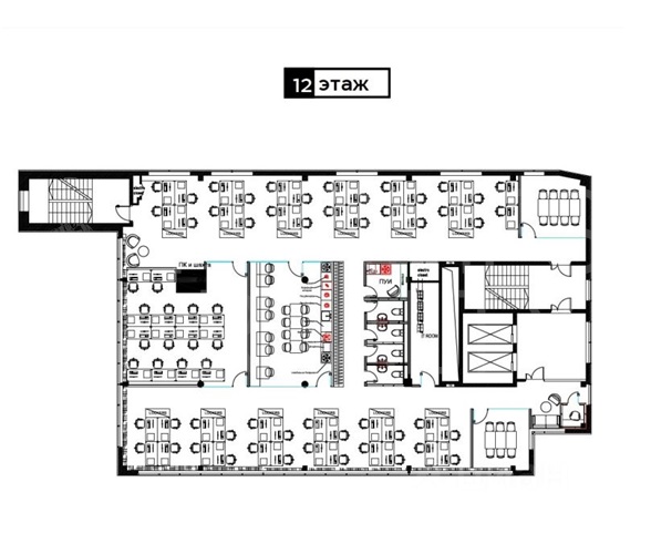 Предусмотрено 41 рабочее место , что обеспечивает комфортное использование пространства для средних и крупных команд 🖥️.