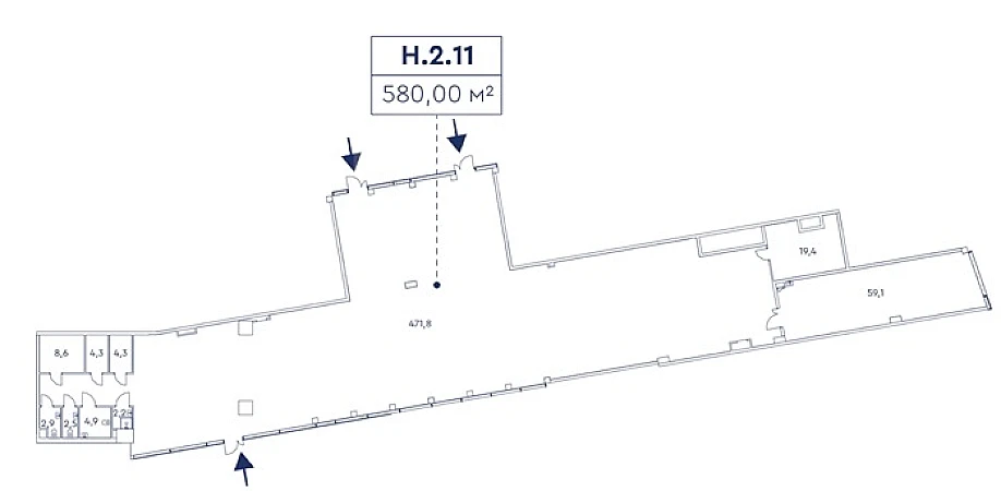 Максимальное полезное пространство и наличие мокрых точек делают помещение универсальным для различных видов бизнеса.