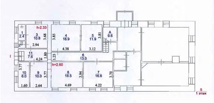 Высота потолков : от 2,2м до 2,6м