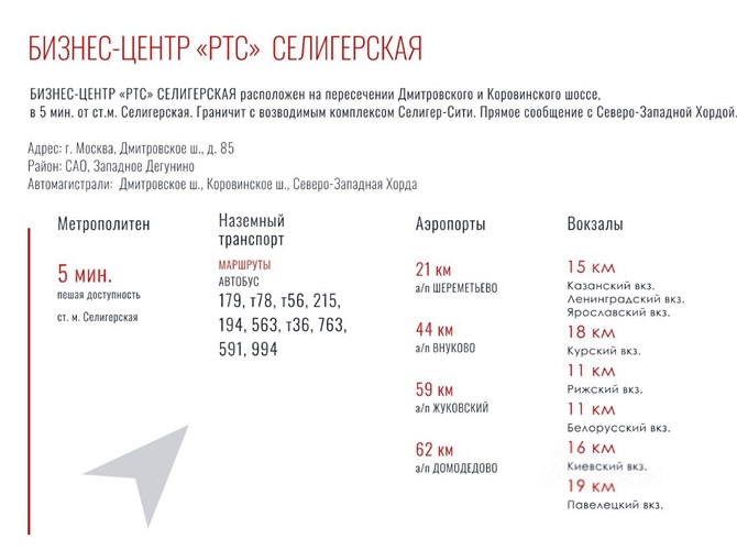 Свободные помещения в БЦ РТС Селигерская