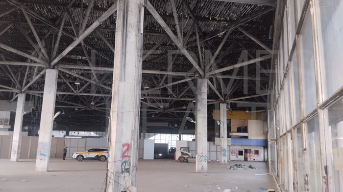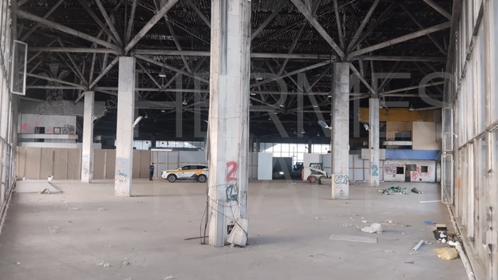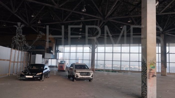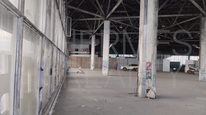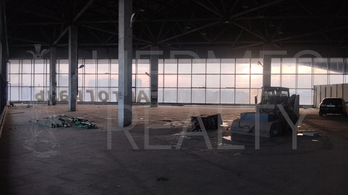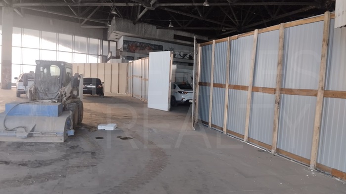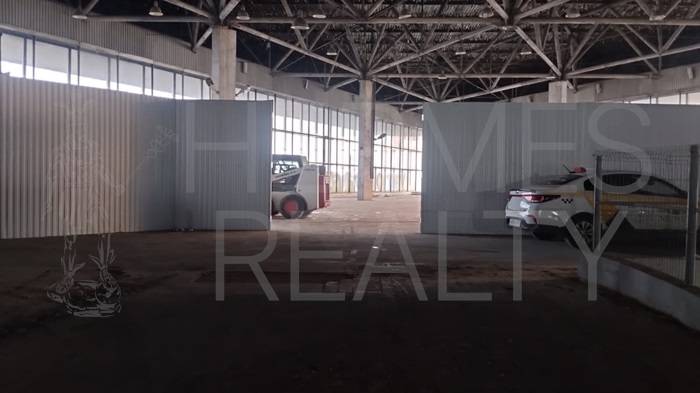 В помещении въездные ворота для грузового транспорта