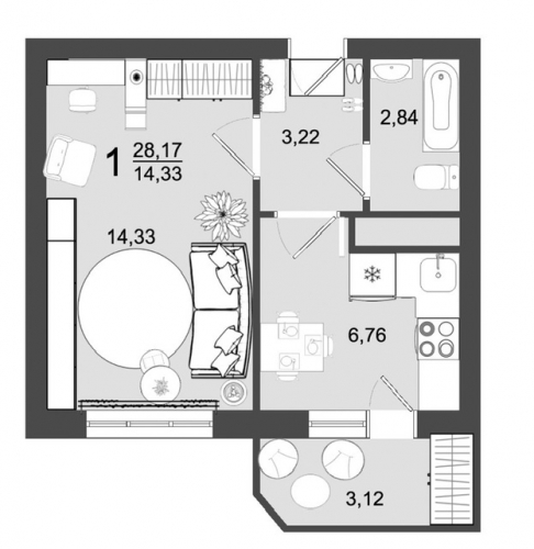 Купить 1к квартиру 28 м² в ЖК Майданово Парк