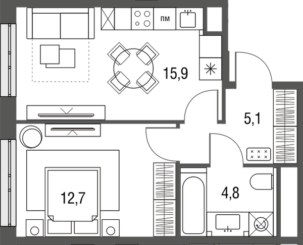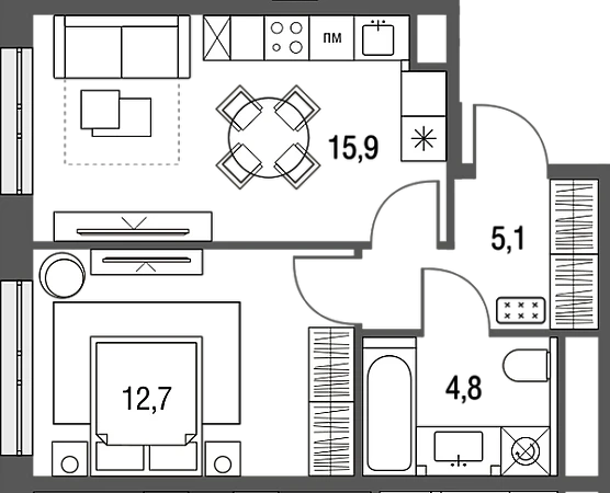 Купить 1к квартиру 38 м² в ЖК Сиреневый парк