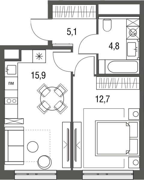 Купить 1к квартиру 38 м² в ЖК Сиреневый парк