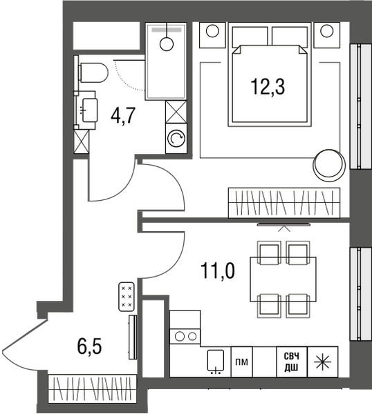 Купить 1к квартиру 34 м² в ЖК Сиреневый парк