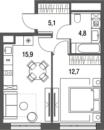 Купить 1к квартиру 38 м² в ЖК Сиреневый парк