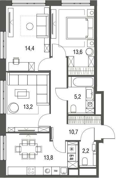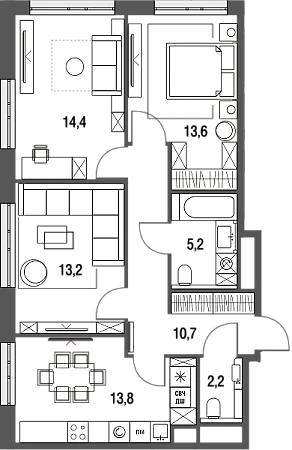 Купить 3к квартиру 73 м² в ЖК Сиреневый парк