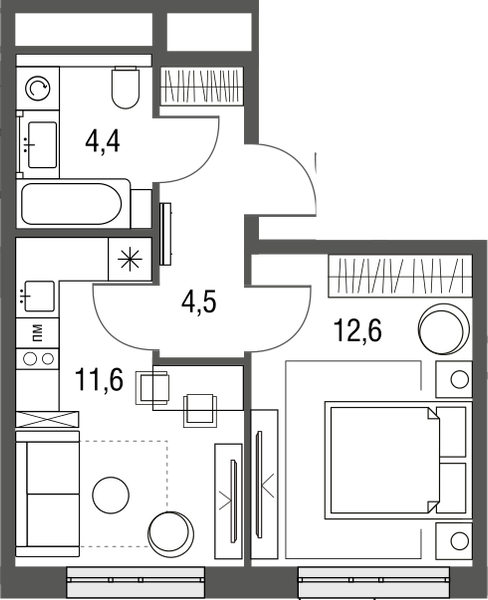 Купить 1к квартиру 33 м² в ЖК Сиреневый парк
