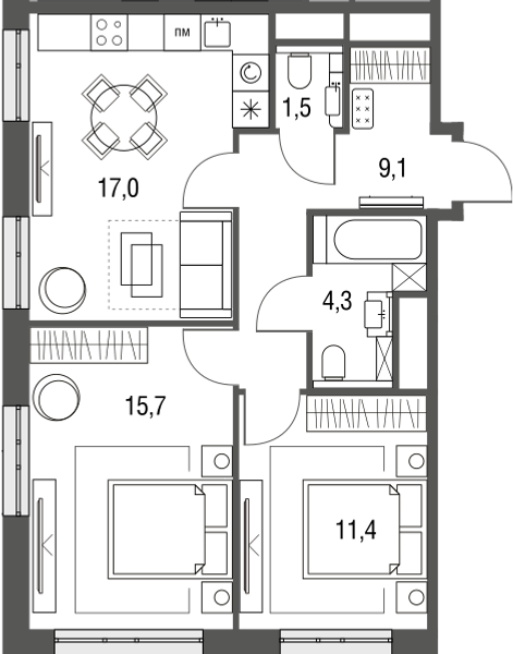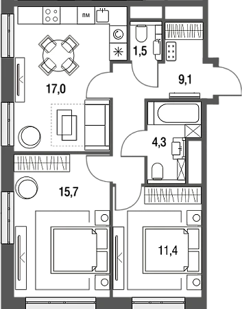 Купить 3к квартиру 58 м² в ЖК Сиреневый парк