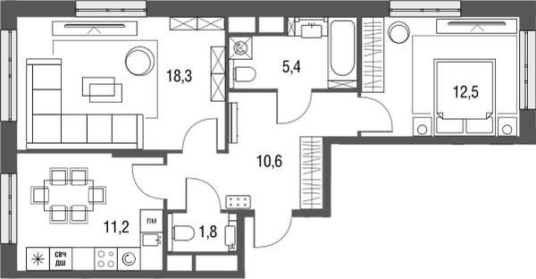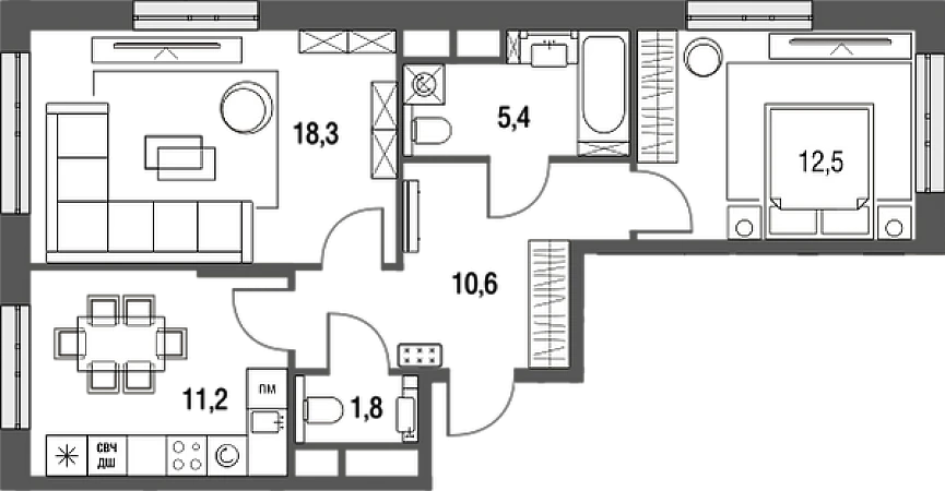 Купить 2к квартиру 59 м² в ЖК Сиреневый парк