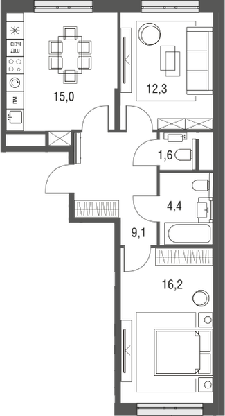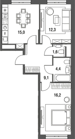 Купить 3к квартиру 58 м² в ЖК Сиреневый парк